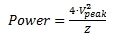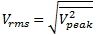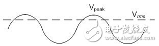 功率与电压的关系就如公式 (4) 所示,其中Z为系统的特性阻抗(通常为50Ω),而Vpeak是RF电压的峰值,如图3所示。RMS电压则可用公式 (5) 算出。