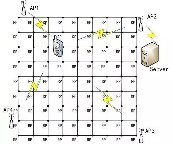 在定位空间中建立指纹数据库,通过将实际信息与数据库中的参数进行对比来实现定位 |