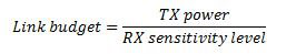为了方便起见,链路预算通常以对数刻度(dB)为单位进行表示。输出功率和灵敏度通常被表示为相对于1mW(dBm)的一个对数刻度。这意味着