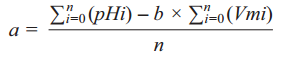 (Vmx – Vm1) × (pH1 – pH2)/(Vm1 – Vm2) + pH1