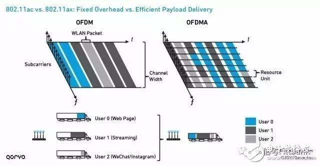 同时,OFDMA 还减小了子载波之间的间隔,从而将更多资源单元装载到卡车中。