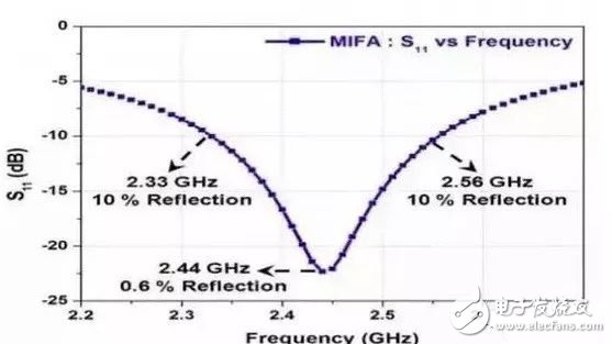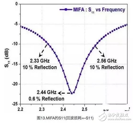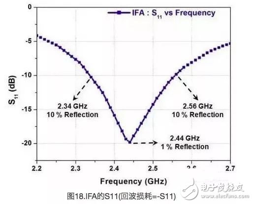 IFA在220MHz的带宽上(S11≤–10dB)的频率约为2.44GHz,如图18中所示。