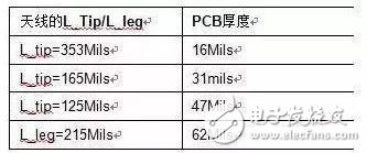 根据PCB的不同厚度,需要调整MIFA天线的长度,这样才能调整天线辐射的阻抗和频率选择。根据不同的电路板厚度,赛普拉斯提供了下面各天线长度。