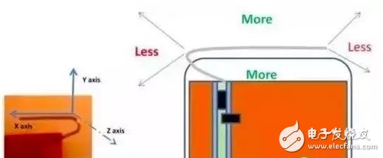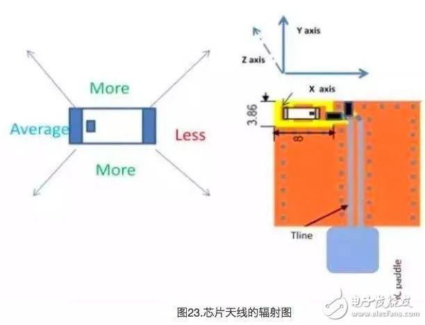 芯片天线的性能是由接地层决定。一般来说,它们需要更多的接地面积和更大的空间。如上图所示,对于2450AT42B100E的天线,最小的接地距离为0.8mm。该间距为2-3mm时,观察到的s11会更加明显。芯片天线不一定是严格等向性的。辐射存在某些优先的方向。根据Gnd间距和塑料配件,辐射最大的方向也不一样。有关约翰森技术的芯片天线(2450AT42B100E)的常见辐射方向,请参见图23。