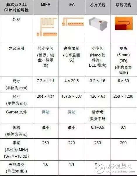 赛普拉斯只推荐将芯片天线使用在要求PCB空间极小的特定应用中,例如:Nano蓝牙收发器或超小的模块。对于这些应用,赛普拉斯也建议使用含有约翰森技术的2450AT42B100E芯片天线,因为与2450AT18B100E相比,它的尺寸更大,射频性能更好,并且需要较小的Gnd间距。介绍翰森技术天线的内容仅供参考。更多有关2.4GHz芯片天线的信息,请向各供应商索取,如Murata、Vishay等。对于大部分应用,建议使用PCB天线,如MIFA或IFA。这些外形小(占用空间小)的天线虽然廉价,但提供的性能非常卓越。
