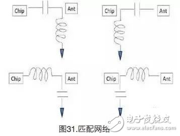 2.确定天线的阻抗后,通过执行阻抗转换使用拓扑使天线阻抗变为50Ω。赛普拉斯MIFA或IFA的大部分匹配网络(图31所示)是由两个组件构成的。