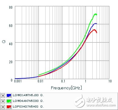 图2为LQP02TQ_02/LQP02TN_02/LQP03TN的Q (均为6.8nH) 对比图表。此图表是采用了前面介绍的SimSurfing表示的。