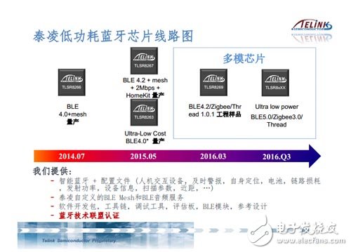 图2:泰凌微电子低功耗蓝牙芯片开发路线图(Slide 7)