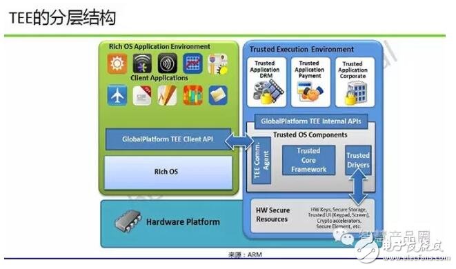 TEE是(Trusted Execution Enviroment可信执行环境)最早出于OMTP规范,ARM是TEE技术的主导者之一,其TrustZone即是支持TEE技术的产品。