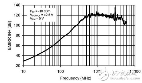 最后,请注意许多其它因素,如PCB布局和屏蔽,也可影响用户系统的抗RF干扰能力。不过,一旦在用户的设计中优化了这些因素,使用具有良好EMIRR的放大器就可实现最佳性能。而且,用户无需进行任何复杂的计算。仅比较不同放大器的EMIRR曲线即可选择最适合用户应用的器件。笔者希望用户能利用 EMIRR规范来优化用户系统抗RF信号干扰的能力。