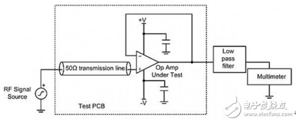 用户也许会问:“对于由给定RF信号产生的DC偏移电压,我如何确定其幅度?”其实,放大器对RF干扰的敏感性取决于该放大器所采用的设计和技术。例如,许多现代放大器具有内置的RF滤波器,可尽量减少出现该问题的几率。该滤波器对低增益带宽运放而言是最有效的,因为该滤波器的截止频率可以设置成较低的频率,这能提供更高的RF信号衰减系数。除此之外,一些技术产品具有更强的内在抗RF干扰能力。例如,比起双极型器件,大多数互补金属氧化物半导体(CMOS)器件具有更强的抗RF干扰能力。输入级设计等其它因素也可影响抗RF干扰能力。