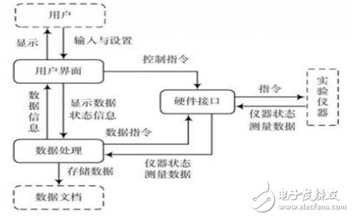 用户界面部分,响应用户操作,将硬件设置传输到硬件接口部分,将输入数据送到数据处理部分,同时将数据处理部分送来的数据与状态信息显示给用 户,使用户可以便捷地完成测量控制与监控。数据处理部分,一方面将硬件接口传递来的数据与状态信息进行处理,转换为用户需要的格式以供显示和存储;另一方 面将用户设置的数据信息转换为数据指令交给硬件接口部分。