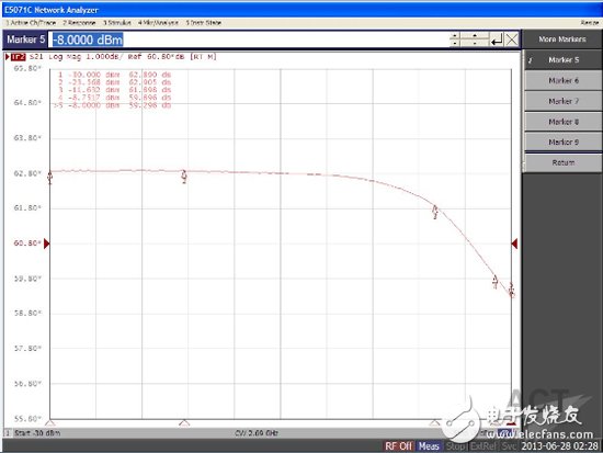 2690MHz AM-AM从以上的AM-AM曲线可以看出,在输入功率-30dBm—-16dBm范围内,增益波动约为0.1dB,功放增益线性度较好。
