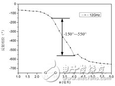 为了验证上一小节中设计的反射阵单元的相移特性并估计其带宽,在Ansoft HFSS中,对该单元进行建模仿真。具体仿真结果如图3-图4所示。