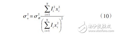 下面分析阵列通道间幅相误差对波束指向的影响。均匀分布的阵列(相邻阵元的间距相等)指向误差的方差可由式(10)得到: