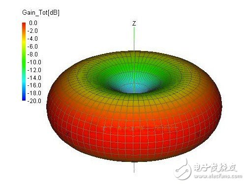 天线的摆放角度也是影响WiFi接收的重要因素。例如多数无线路由器配备的全向天线,一般是标准偶极天线,如图所示呈“环形”立体覆盖,在垂直方向上无线覆盖更广,但在其上方和下方则是信号覆盖的薄弱点,接收效果会受影响。所以当无线路由器的天线以垂直方向摆放时,将无线接收设备放置在天线的上方和下方,很可能不会获得最好的无线传输表现。