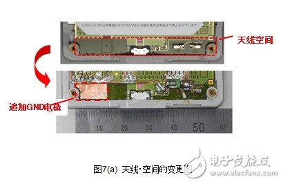接下来将针对天线小型化的有效性进行检测。一般来说天线具有改善接地距离的特性。但是,天线占据空间(排除了GND领域)很大的话天线以外的 元器件安装空间就会受压迫。天线小型化和缩小天线空间迫在眉睫。当天线空间的一部分被GND占据,对这时候的天线特性的变化进行评价。天线空间的宽度为52mm,其中13mm被GND占据,low band的特性劣化,变成了跟LC电路等同的Total Efficiency(图7(b))。这就意味着实际上天线空间的面积可减少25%。