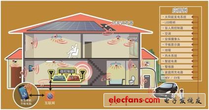 在实际住宅中使用的示意图如图5所示。该产品可实现HEMS的巨大作用即电力供给与需求的“可视化”,以及“有效地控制”。在家中的各终端安装920MHz频段特定小功率无线模块,通过特定小功率无线实现网络化。它将各设备的电力供需情况信息集成于家庭网关注3(Home Gate Way),监测器画面显示供需情况,实现电力的“可视化”,并通过家庭网关综合管理,有效控制设备。