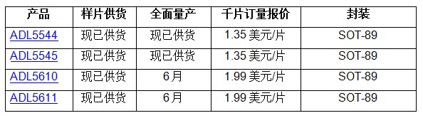 · 若需下载数据手册或申请样片,请访问产品页面:http://www.analog.com/zh/pr0531/adl5544、http://www.analog.com/zh/pr0531/adl5545、http://www.analog.com/zh/pr0531/adl5610、http://www.analog.com/zh/pr0531/adl5611