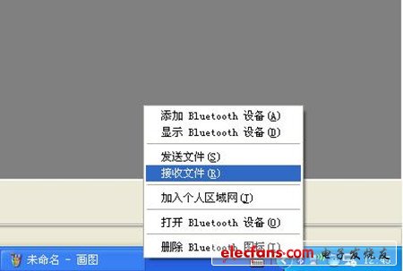 6、从手机上发送图片或文件数据到电脑上,选中您手中要发送的文件,点发送经蓝牙,然后选中搜到的电脑蓝牙,输入密钥。出来这个窗口,正在等待接收文件,说明电脑就绪,等待蓝牙发过来。手机点发送,电脑上会出现接收文件进度条。