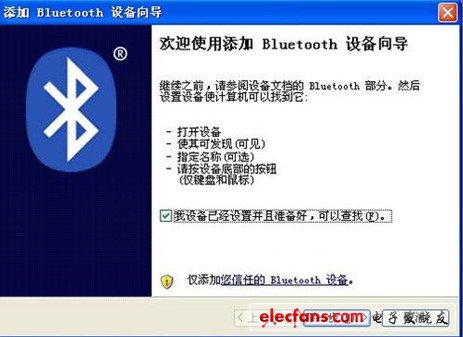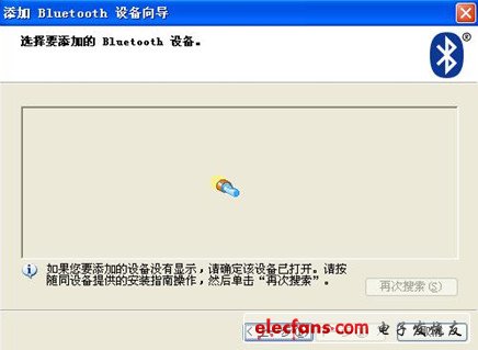 3、添加蓝牙设置向导窗口,按步骤一步步进行。把手机蓝牙打开或把其他蓝牙设备打开,搜索蓝牙设备。