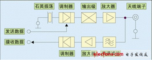 在耦合方式(电感-电磁)、通信流程(FDX、HDX、SEQ)、从射频卡到阅读器的数据传输方法(负载调制、反向散射、高次谐波)以及频率范围等方面,不同的非接触传输方法有根本的区别,但所有的阅读器在功能原理上,以及由此决定的设计构造上都很相似,所有阅读器均可简化为高频接口和控制单元两个基本模块。高频接口包含发送器和接收器,其功能包括:产生高频发射功率以启动射频卡并提供能量;对发射信号进行调制,用于将数据传送给射频卡;接收并解调来自射频卡的高频信号。不同射频识别系统的高频接口设计具有一些差异,电感耦合系统的高频接口原理图如图所示。