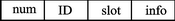 时隙调度表用于将分配好的时隙以及节点ID写入该表,字段内容如图2所示。num表示该时隙的序列(即传输优先级次序),ID表示传感器节点ID号,slot表示分配的时隙大小,info表示其他信息。
