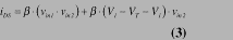 上述问题可以通过在CMOS中对偏离线性区域的MOS混合晶体管中的电流进行线性调制加以解决。对于栅极电压V1+vin1、漏电压V2+vin2/2以及源电压V2-vin2/2,通过晶体管的电流可由下式计算: