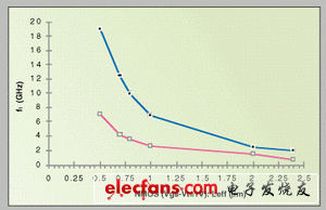 在进一步提升集成度的同时,研究人员也力图采用CMOS工艺集成射频电路。虽然CMOS技术主要应用于数字电路的集成,但如果能在高性能模拟电路中应用CMOS技术,将使性能得到很大提高,其优势将更为明显:可在单块芯片上集成完整的收发器系统,即同一裸片上既集成模拟前端器件,又集成数字解调器。这种需求只能利用CMOS或BiCMOS工艺实现,BiCMOS工艺能提高模拟设计的性能,但成本也相应提高,这不仅因为单位面积的成本增加,而且需要为数字电路部分预留更大的芯片空间。随着在CMOS工艺上的投资远远超出双极性器件,普通CMOS工艺将逐步消除BiCMOS器件与采用深亚微米 CMOS工艺的NMOS器件,甚至消除采用相同BiCMOS工艺的NMOS器件之间的性能差异。NMOS器件的ft参数将逐渐接近NPN器件的ft。