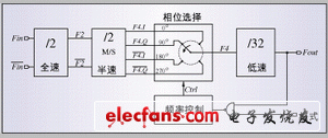 为设计高速双模数预分频器,目前业界已经开发出了可基于M/S触发器主输出和从输出之间90°的相位关系的新架构。该架构如图5所示。采用该架构,在24mW功耗和一个3V电源条件下,可以得到1.75GHz的输入频率,甚至还可以利用5V的电源得到2.5GHz的输入频率。