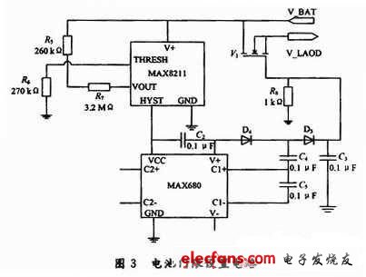 由MAX680及MAX8211构成的锂电池放电门限设置电路如下图3所示。