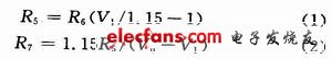 在该电路中,当锂电池电压下降到由R1和R5所决定的门限电压时,MAX8211就会截止MAX680的供电电压,最后使IRF541处于关闭状态而断开供电电池与负载电路。IRF541功率开关的导通电流小于0.5 mA,关闭漏电流仅为8μA以下。该电路的启动门限Vu和截止门限V1与外加电阻R5,R6和R7之间的关系可由下式给出: