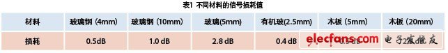通过测试,对于GSM1800系统来说,各种材料的信号损耗大致如表1所示。