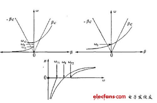 图2.平衡和平衡结构的复合左手传输线相移常数、折射率与频率的关系