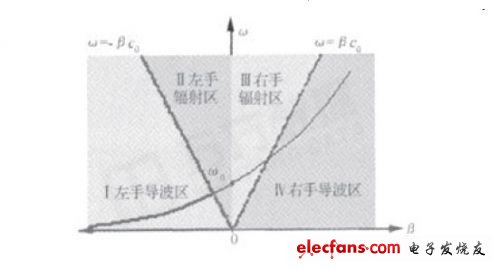 图3.合左手微带天线的色散曲线