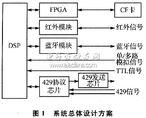 足系统对TTL信号和模拟信号的采集需求,通过外接ARINC429、红外和蓝牙专用接口芯片,实现ARINC429数据信号的采集和两种无线方式的通信。
