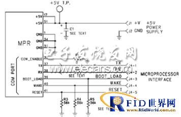 基于高可靠性和低成本的考虑, 本系统使用了基于S344B0 的嵌入式CPU 和WJ 6000 射频模块为基础, 配合USB、Realtek 网卡、SDRAM 等芯片组成了核心系统, 其中关键的射频模块与CPU 接口如图2。