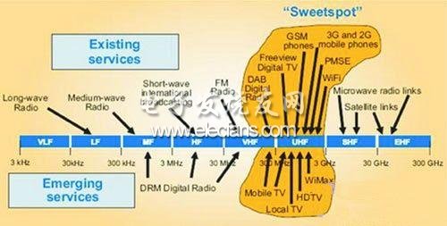 籍着电磁频谱图,人们可以非常方便地对电磁辐射(能量、信号)进行宏观尺度(缩小)与微观尺度(放大)方面的把握与分析研究。由此,也形成了形式多样的电磁频谱图的表示方法。图2所示为电磁频谱图的频段表示。