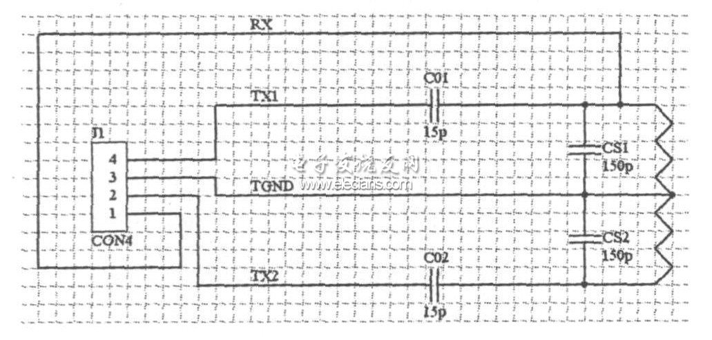 天线连接到读写芯片时,需要外加匹配电路。如图4所示。系统对天线进行了大致估算,并通过改变匹配电路的电容值,以达到最佳的读写距离。