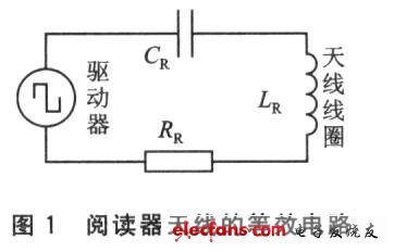 阅读器基站天线是由电感、电容和电阻组成的串联谐振电路,如图1所示。其特性用谐振频率fo和Q因子表示[3]。fo是RFID系统的工作频率,由天线的电感和电容共同决定,可以由式(1)来计算: