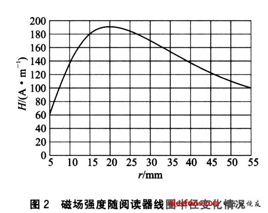 从图2中可以看出,如果阅读距离d为常数,当rd时,场强基本按比例减小。由此可以得出:天线线圈的最佳半径为r≈d。