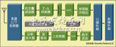 高动态范围A/D靠一个高速采样时钟提供时钟信号,所以在设计和布局阶段必须仔细考虑基底噪音及RF前端的耦合噪声。来自RF采样时钟谐波的干扰如果处在通道带宽之内的话,可能会降低接收器的性能。一旦信号实现了数字化,一个公共的硬件平台可用来提取期望信号,同时阻止干扰信号。几项射频功能,如直流偏移抵消、自动增益控制和频率偏移校正等,在实际的数据解调之前可以作为射频的一部分被执行。这减轻了对DSP指令运算速度方面的要求,同时使无线电控制方式更加灵活。