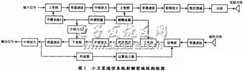 在接收电路中将从天线接收来的微弱信号放大,经过下变频得到中频信号,为了放大器的稳定和避免自激,在一个频带内的放大器其增益一般不超过 50~60dB,通过选择合适的中频频点和滤波器,可以实现很好的选择性和灵敏度。发射电路中将中频信号上变频得到射频信号,经过滤波和功率放大输出给天线发射出去。