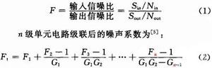由式(2)可知放大器级联时噪声系数主要由第一级决定,因此要求第一级放大器的噪声系数越小越好。为了抑制后级电路对系统噪声系数的影响,第一级放大器需要有较高的增益。