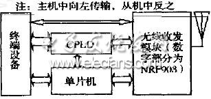 射频收发电路采用NordicVLSI公司的单片射频收发芯片NRF903。该芯片的工作频率为国际通用的ISM频段433/868/915MHz,NRF采用抗干扰能力强的GMSK调制方式来优化信道效率,在GMSK中,在调制载波前采用了高斯滤波器,这样可以在同等带宽下传输更高速率的数据,可在155.6kHz的有效带宽下传输最高76.8kbps的数据。最大发射功率可以调整到+10dBm,天线接口设计为差分天线。NRF903的工作电压范围为2.7~3.3V,NRF还具有待机模式,这样可以更省电和高效。芯片的参数包括工作频率和发射功率都可以通过一个14bit的配置寄存器用SPI串行线进行设置。采用DSS+PLL频率合成技术,频率稳定性极好;灵敏度高,达到-100dBm.内置独有的镜像频率抑制电路。