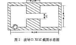 馈电部分的结构示意图见图3,通常采用N型同轴接头馈电,同轴线的外导体连在波导的侧壁上,同轴线的内导体通过第一个脊的腔体,连到第二个脊上形成短路,内导体在波导腔内可看作一单极辐射器,由于普通波导的阻抗远大于同轴线的阻抗,因此内导体必须终止在远离波导壁的地方,以防止失配,而脊波导的阻抗与同轴线的阻抗相一致,所以同轴线的内导体必须接在相对的脊上以利于匹配。最后,再在脊波导的后端加一段直波导(长度应小于最高工作频率的半个波长),作为滤除被激励出来的TE20模,因此脊波导的可用带宽应是λc10/λc30,而不是λc10/λc20.显而易见,单模工作带宽被大大的加宽了。
