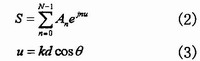 其中An为激励的幅度,θ为观察方向与直线的夹角,d为阵元间距。由于谐振阵各单元是同相的,即φn=O,则上式可简化为: