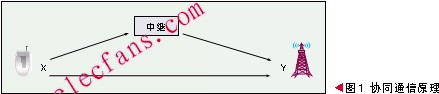 协同通信是指根据用户与用户、用户与站点之间的无线信道特性、用户功率限制以及用户服务需求等,借助邻近站点或用户进行中继、协同与分集,实现可靠传输的技术。其原理如图1所示。图1中用户数据X经中继信道和直接信道发送到接收端,接收端收到合成信号Y。