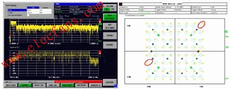 图4 在FSQ上进行WiMAX频谱和星座图测试界面