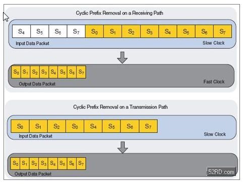 图9:循环前缀移除操作前后的数据包比较。